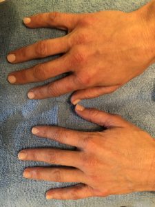 Erin was with me, she was shocked, and this lady says she’s having people walking up to her wanting to know what the heck she has done, which we normally see with our Vampire, but I’m telling you this was more dramatic than I have ever seen with a Vampire Facelift. I’ll have those pictures for you at least of the hands. For privacy reasons, I’m not going to show the face, but the hand pictures. All I did was I talk the usual, I took a syringe of Juvederm and I took some amnion, one Juvederm syringe, one of our five milligram amnions, mixed it together with some PRP and did her hands, and it was really shocking.