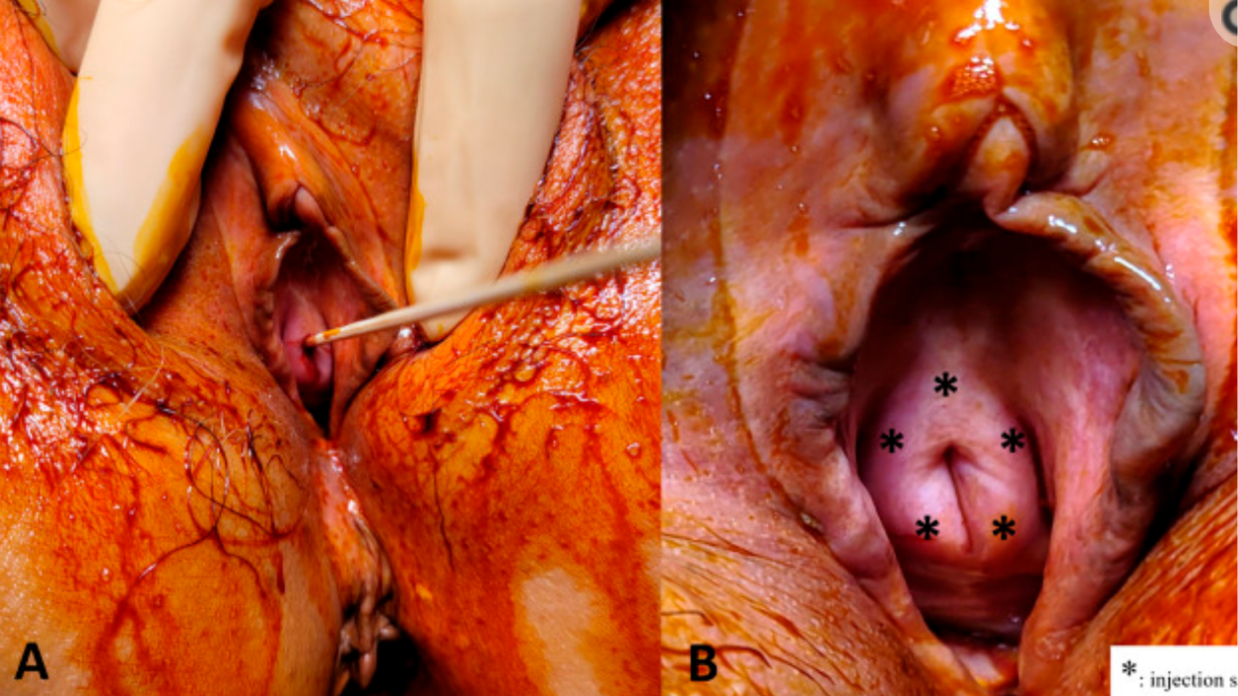 Another third technique (not pictured here) showed benefit for SUI but described injecting 4 cc of PRP spread out in 0.1 ml aliquots for FORTY separate injection points.